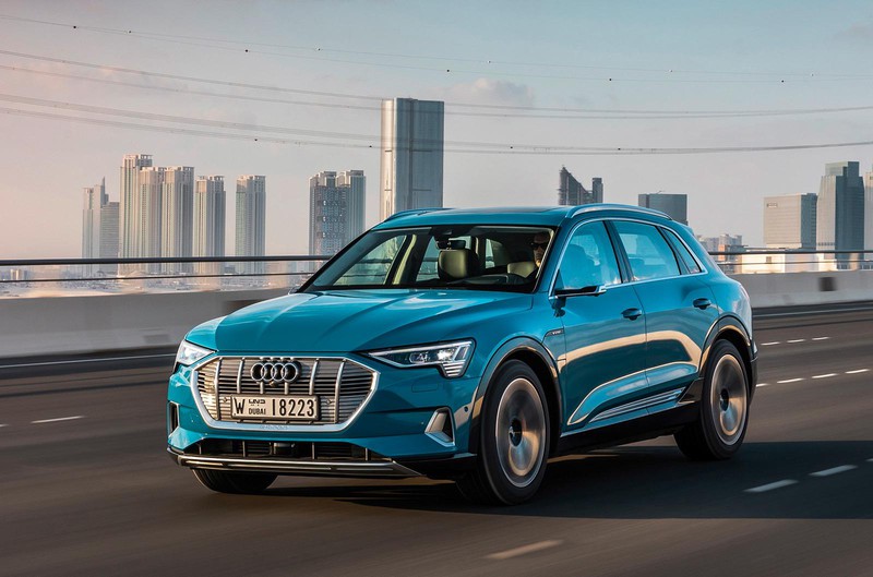 e-tronはピュアな電気自動車(EV)として開発された。4.9メートルの全長に、1.6メートルを超える全高という、余裕あるサイズの車体に、2基の電気モーターと高性能バッテリーを搭載し、「e-quattro(イークワトロ)」と呼ばれる四輪駆動システムを組み合わせている。