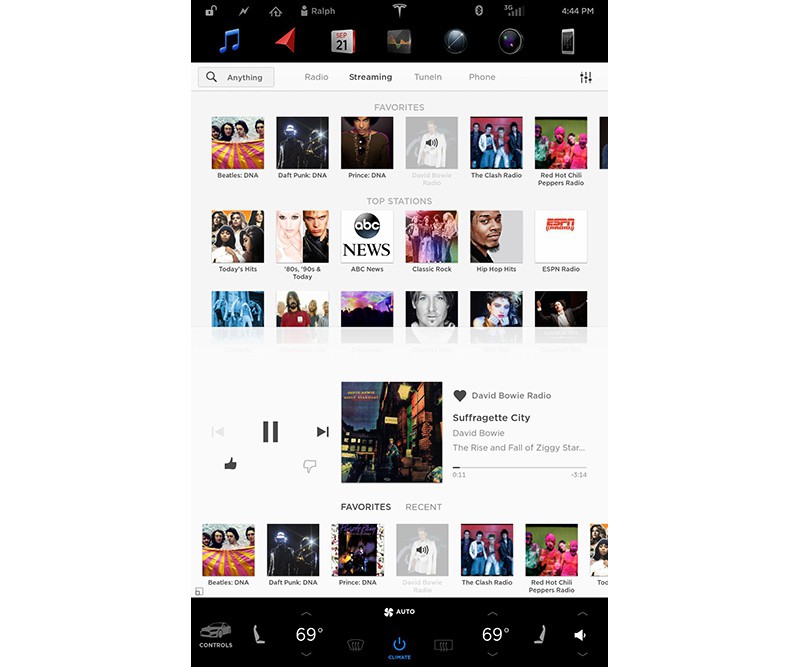 モデル3のコクピットでびっくりするのは、メーターが一切ないこと。15インチサイズのタブレット型のモニターがダッシュボードに備え付けられていて、これが計器盤とインフォテイメント(ナビゲーションとかオーディオ)のコントローラーを兼ねています。