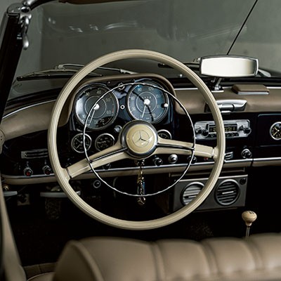本国ドイツでまず機関部品などのフルレストアを実施。すべてのスチール部品、アルミニウム部品は丁寧にレストアされオリジナル部品を使用し、復元率は90%を誇るといいます。そしてシートなどの内装も新品かつ自分好みの配色へアレンジ。お値段は多少張りますが、この時代のSLとしては決して高くないでしょう。何よりこのクルマを見て、美しさにときめかない女性なんておそらくこの世に存在しませんよ。