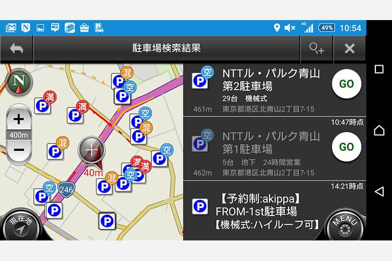 「カーナビタイム」では、検索したパーキングの満車情報までも案内してもらえる