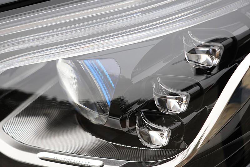 先行車やひとなどを検知すると部分的に照射をカットするアダプティブ機能をそなえたヘッドランプ