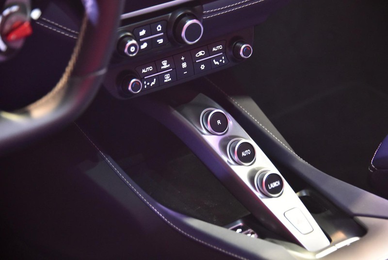 ステアリングホイールには、エンジンスタートボタンやマネッティーノのセレクトスイッチなどが設置されている