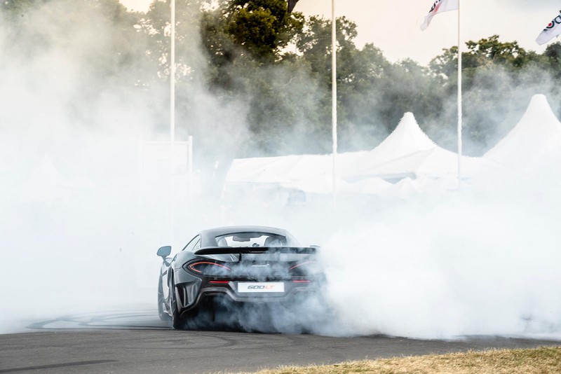 「フェスティバル・オブ・スピード」の観客の前で派手なバーンアウト(タイヤから白煙をあげての円旋回ドリフト)を見せた「600LT」