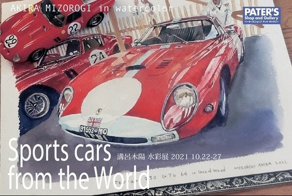 本連載のイラストを描かれている、溝呂木陽先生の水彩展が開催されます。フェラーリ、ポルシェ、コブラ、アルファロメオなど、珠玉のスポーツカーたちに加えてパリの風景、街並み、明るい陽の光を水彩画で表現したイラストが多数展示されます。