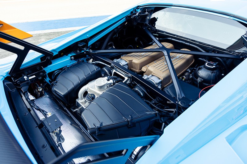 RWDのエンジンに目を移すと、自然吸気V10エンジンは640ps/565Nm、0-100km/h加速タイムは3.0秒、最高速度は310km/hというパワーを発生させる。足まわりにはこのクルマのために開発されたというブリヂストン製『ポテンザ』にマグネシウムホイール&カーボンセラミック系のブレーキディスクという組み合わせを採用。もちろんこれはレース車両に採用されているブレーキングシステムを受け継ぐもので、従来のブレーキに比べて熱伝導率は4倍も高く、最大制動力は25%向上しているという。