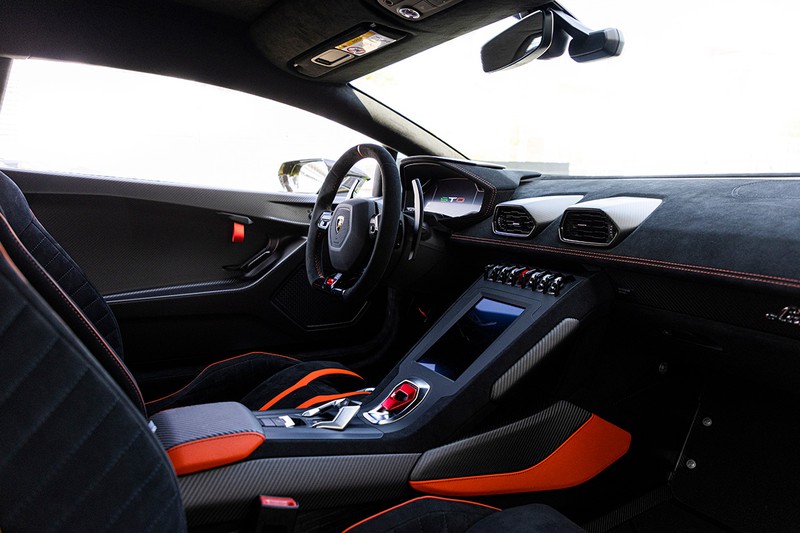 またステアリングホイールに取り付けられたドライビングモード切り替えセレクターからしてやる気満々で「STO」、「トロフェオ」、「ピオッジア」となっているのもウラカン STOならでは。わかりやすく言えばこれらは「スポーツ」、「レース」、「ウエット」の3段階で、こんなところもサーキット由来な気分を味わえるのだ。