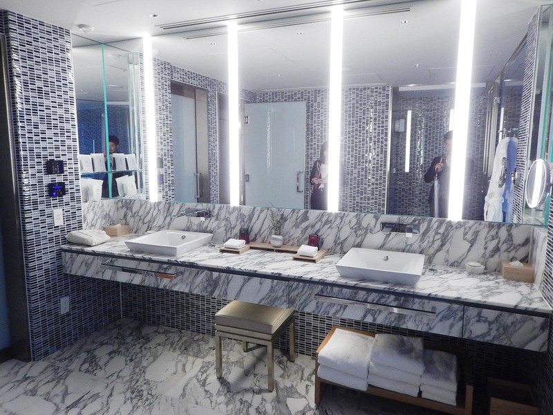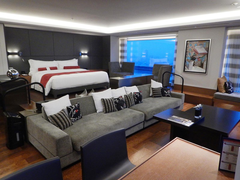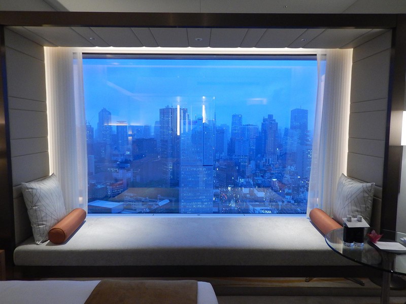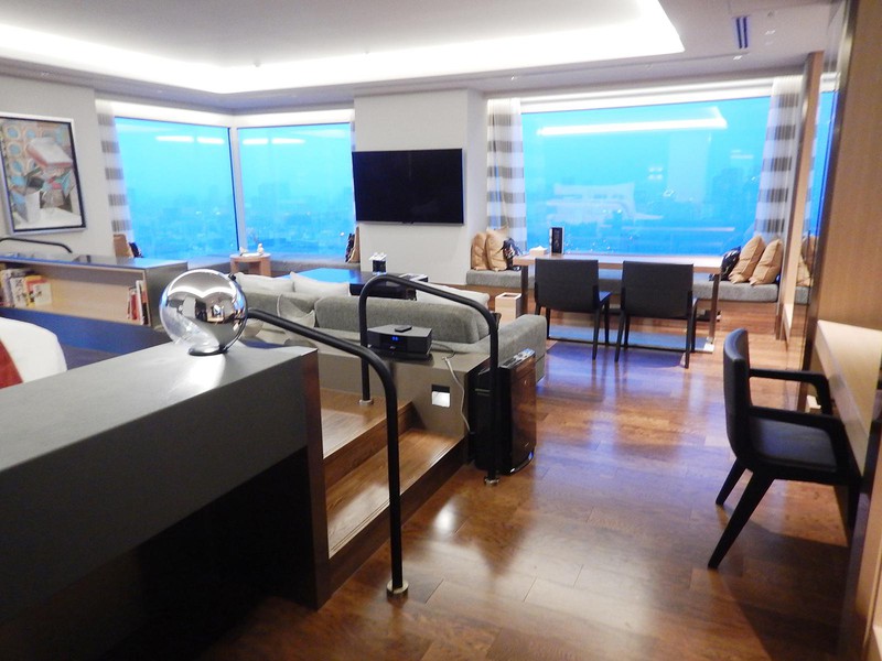 スイートでなくてもとても素敵ですよ、という意味でスタンダードなお部屋の写真を一枚。最上階で地上約180mの風景をまるで一枚の絵画として切り取るように窓がレイアウトされています。実際にここでゆっくりと過ごされるゲストも多いのだとか。