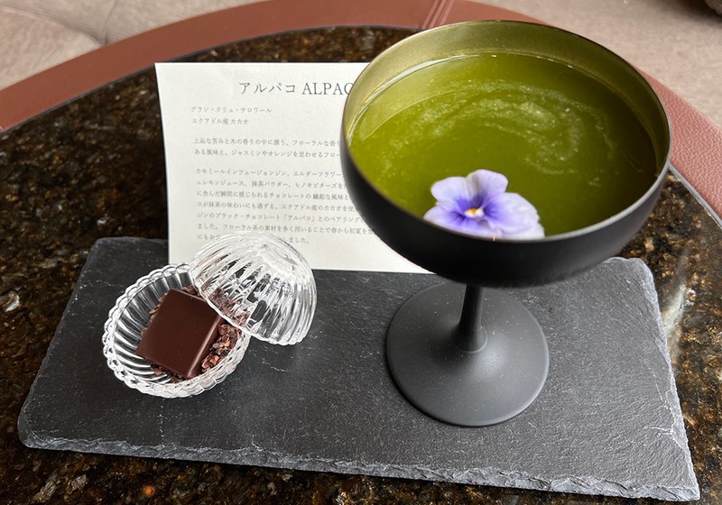 さて、ペアリングの企画名はズバリ“EAST MEETS WEST COCKTAILSとヴァローナ チョコレートの邂逅”。“EAST MEETS WEST COCKTAILS”は、同ホテルのコンセプトである「日本と西洋の文化が出会う素晴らしい瞬間」を表したものであり、そこに今年100周年となるフランスの高級チョコレートブランド「ヴァローナ」がコラボした、というなんだかスペシャルな内容です。