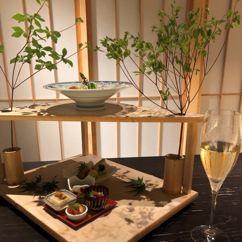 ▲ お庭で栽培されているドウダンツツジの若枝が飾られた八寸。