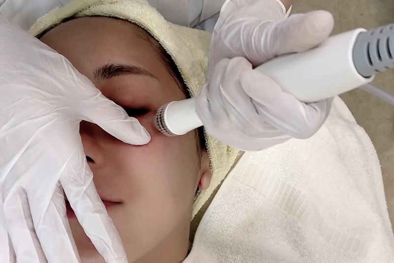 これは1センチ四方に約25本のマイクロニードル(=針)が付いているアタッチメントを肌にあて、皮下でラジオ波を照射します。そうするとコラーゲンが生成され、パンっとはった若々しい肌になるんです。