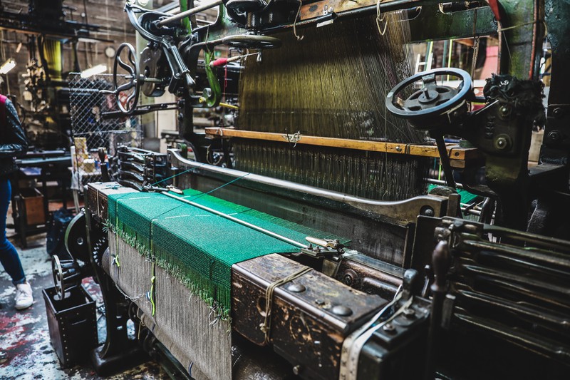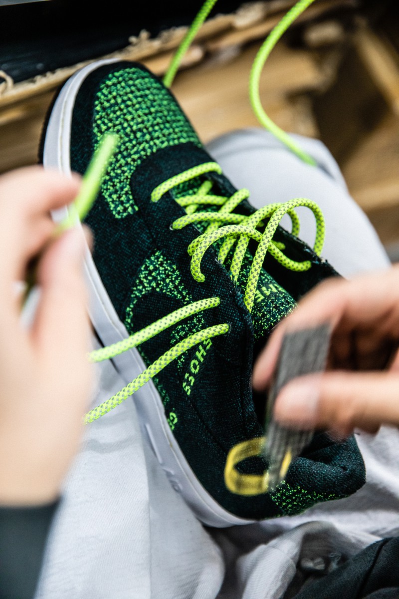 今では一般的になった快適でシワになりにくい生地もいち早く開発しているのですが、そのうちの一つが1922年代に発表された「スポーテックス®︎」という生地でして。そんな生地をベースに今回のスニーカーのために100年以上前の織機で特別に織られた撥水、防汚、防臭機能もある素材を用意したのです。