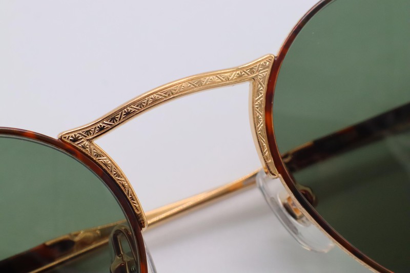 こちらの彫金ポイントは、フロントリムの外周。非常に細かく繊細な彫金が施されていますね。これによってフレームとしての価値が上がるだけではなく、様々な角度であなたの目元を印象的に仕上げてくれるのです。