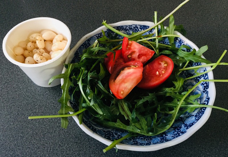 付け合わせです。フルーツトマトが甘い! レンズ豆がホコホコ。
