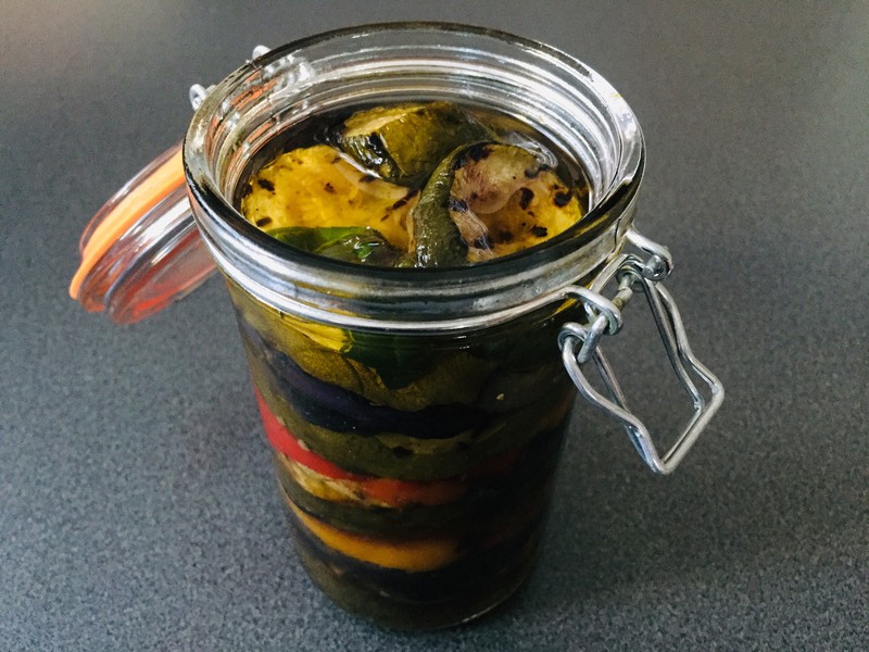 夏野菜を焼いてオリーブオイルに漬けたんだと思うのですが、これめちゃくちゃ美味しいです。これもカポナータというのかしら。