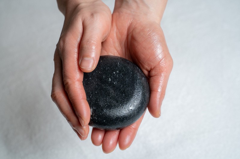 ▲ ストレスによる緊張を感じやすい部位にホットストーンを置くことで、身体も心も軽くなっていく。