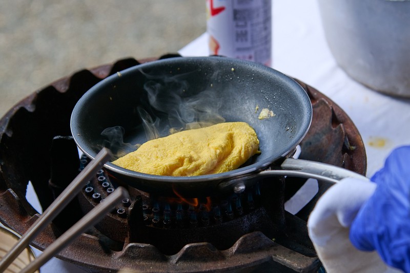 ▲ 珠洲「わくわく広場」での淺野シェフによる炊き出し。ふんわりと焼きあがるオムレツの甘い香りに誰しも笑顔になります。