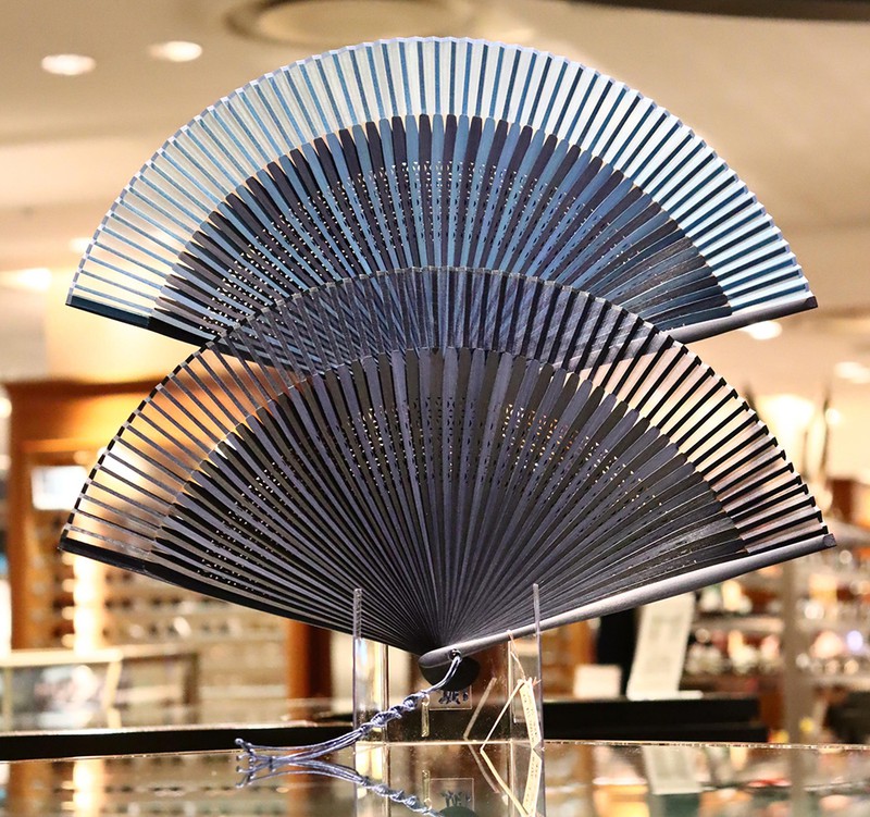 まず一つ目は、60本以上もの竹骨を使った贅沢な「保赤軒」のその名も『多幸扇』。仲骨を交互に微妙に色を変更することで繊細な陰影が生まれ、高級感が漂う仕上がりに。