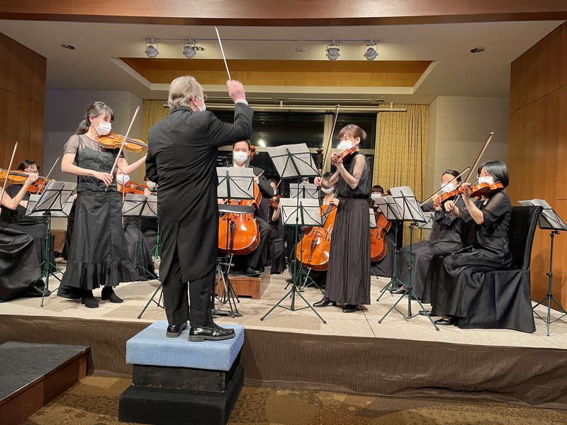 え、コロナ禍でコンサート? と思われる方もいらっしゃるかと思いますが、新しい時代の新しいコンサートスタイルを感じるものでした。会場に入るゲスト、演奏者の人数を絞り、入り口での検温、テーブルは約2メートルのディスタンスを保ち、さらにテーブル内の個人同士のディスタンスにも配慮し、ディナー中以外はマスク着装を徹底し、会場全体の空気が60分に1回換気されるシステムを導入するなどなど、考えられることは全部やる!という気概を感じるものでした。