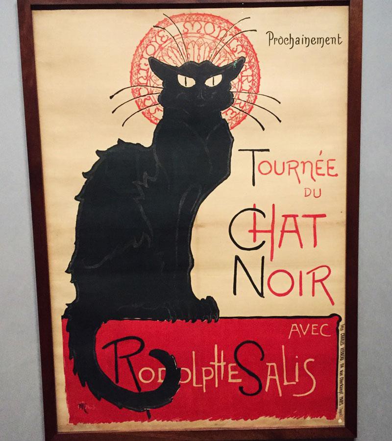 モンマルトルの名門キャバレー「シャ・ノワール(黒猫)」のためののポスター。テオフィル・アレクサンドル・スタンラン作(1896年)。