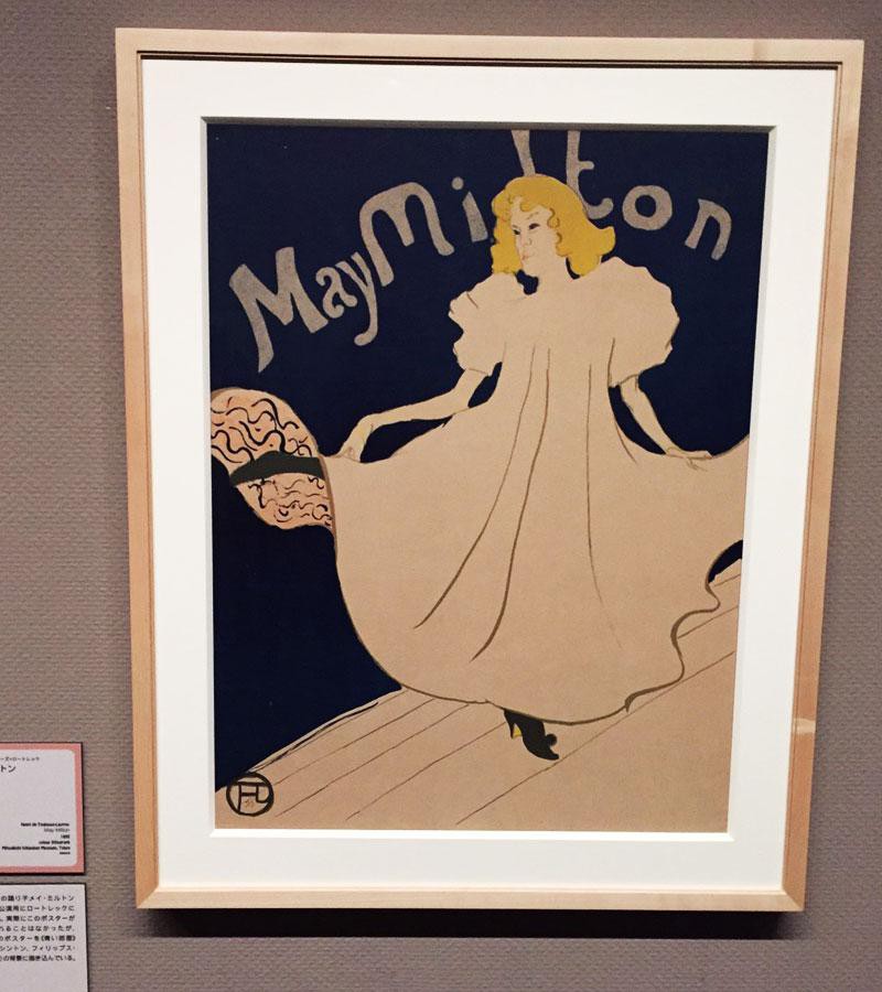 イギリス出身の踊り子を描いた「メイ・ミルトン」アンリ・ド・トゥルーズ=ロートレック(1895)このポスターはのちにピカソの作品「青い部屋」の背景に描きこまれた。
