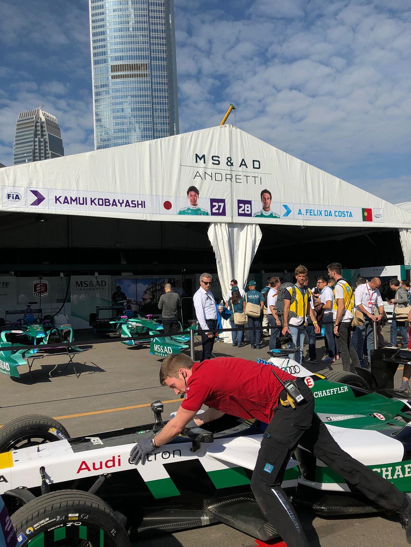 “地下鉄で観に行ける”がキャッチコピーのフォーミュラEらしく、ニューヨークやパリ、ローマ、ベルリンなど、他の開催地も同様でどこのレース会場も都市の中心部からすぐの場所で開催されるのがなによりの魅力。ここ香港でもホテルの部屋からもレースが見える距離でした。