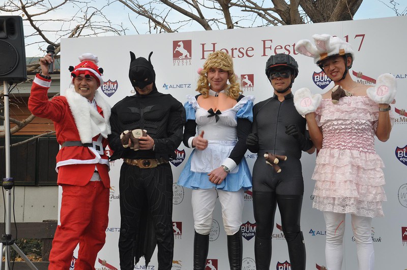 いえいえ、これはイベントなので特別に仮装しているだけ。普段の競技では赤か黒のジャケットに白キュロット(乗馬用のパンツをキュロットと呼びます)でばっちりキメているから、もっとかっこいいんですよ。