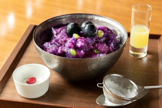 ▲ 「雫氷-JEWEL DROP-」(ジュエルドロップ)1200円。軽井沢天然水のまっさらなふわふわ氷の上にヨーグルトアイスクリームがトッピングされて登場。