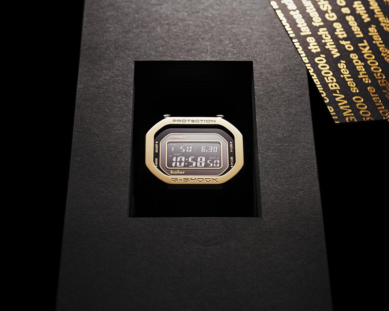 また、バーニーズ ニューヨークでは“G-SHOCK”とkolorのコラボレーションモデルも店頭展開します。実はこちら、先日kolor 南青山にて先行販売され、話題になっている一本。スクエア型のシリーズ最新作「GMW-B5000」をベースに、ケースとベゼルにはステンレス素材を採用し、ゴールドとブラックのクールなカラーリングがとっても素敵です。
