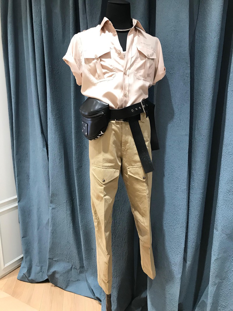 ショーの翌日、同ブランドの展示会が行われていたので、そちらにもお邪魔して、実際に手にとってみたところ、とにもかくにも「軽い!」仕上がりにビックリ。本来ミリタリーがもつタフさやヘビーさは雰囲気だけで、実際には軽やかな素材使いや色使いをすることで、実にいまどきな、スマートなコレクションであることを実感。いやぁ、生意気言っちゃいますけど、クレアのクリエイションがジバンシィとマッチングしてきたなァと。
