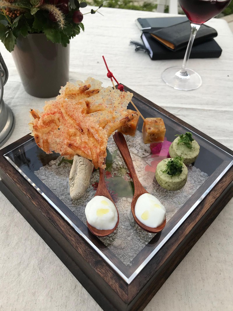 「島テロワール」とは、12月から3月まで提供される、星のや竹富島が考案した冬限定の料理コンセプトで、冬に旬を迎える食材を用いることで表現できるテロワール(天候・土地・人の営み)が織りなす美食を提供する、というものです。この考え方は、2012年の開業時より掲げていた「琉球ヌーヴェル」という、沖縄の食文化と多様な沖縄食材をフレンチの技法で昇華させたお料理で表現する、としていたものをアップデートしたということです。