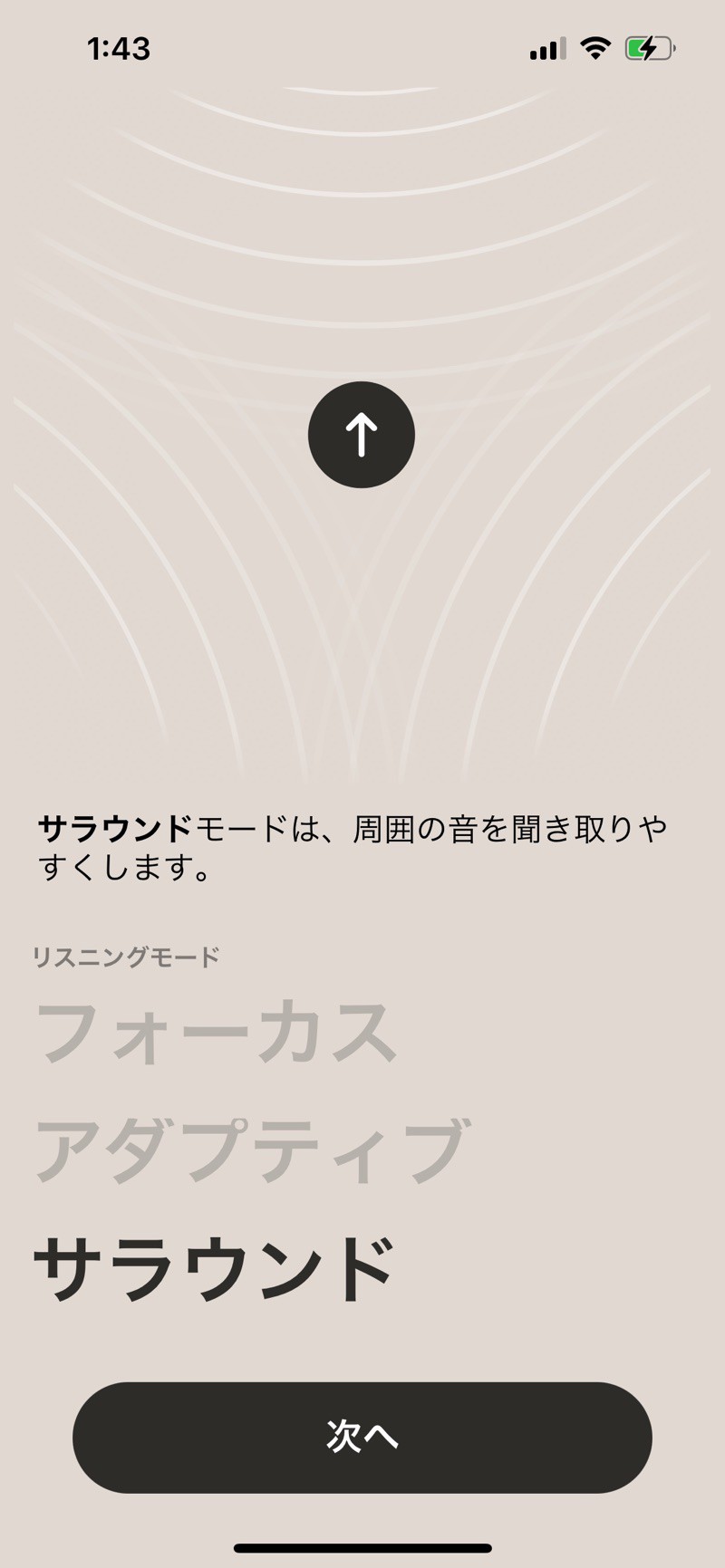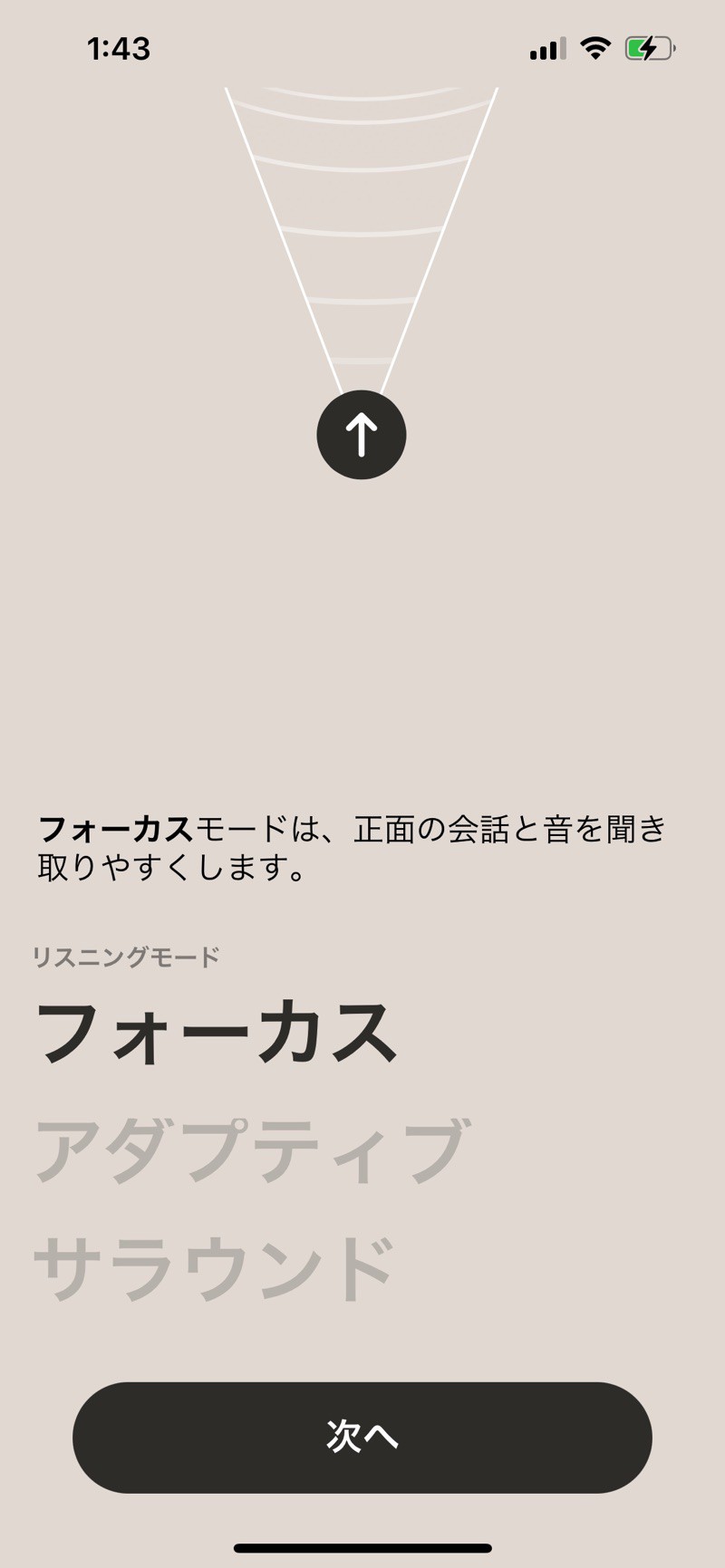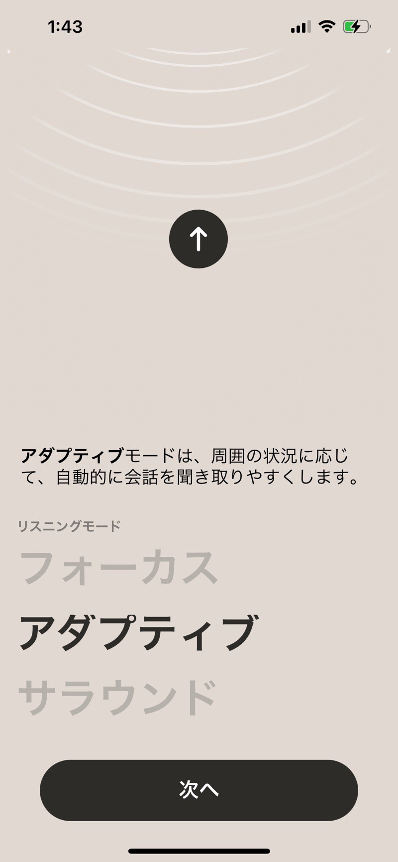 リスニングモードは3種類で、1つ目は指向性ビームフォーミングマイクを使って、正面の相手との会話に焦点をあてる「フォーカスモード」。2つ目は周囲の環境に合わせて自動的に集音を調整する「アダプティブモード」。そして3つ目は、特定の音だけでなく周囲全体の音をより多く取り込む「サラウンドモード」です。状況に応じて使い分けることができます。