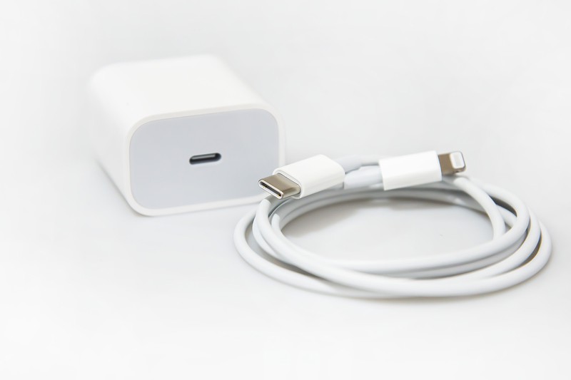できれば両方ともUSB Type-Cであって欲しかった、との声が大きい充電ケーブル。iPhone側はLightning、充電器側がUSB Type-C。