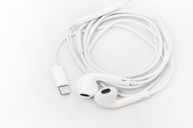 Lightning端子のイヤホンケーブル。リモコン付き。