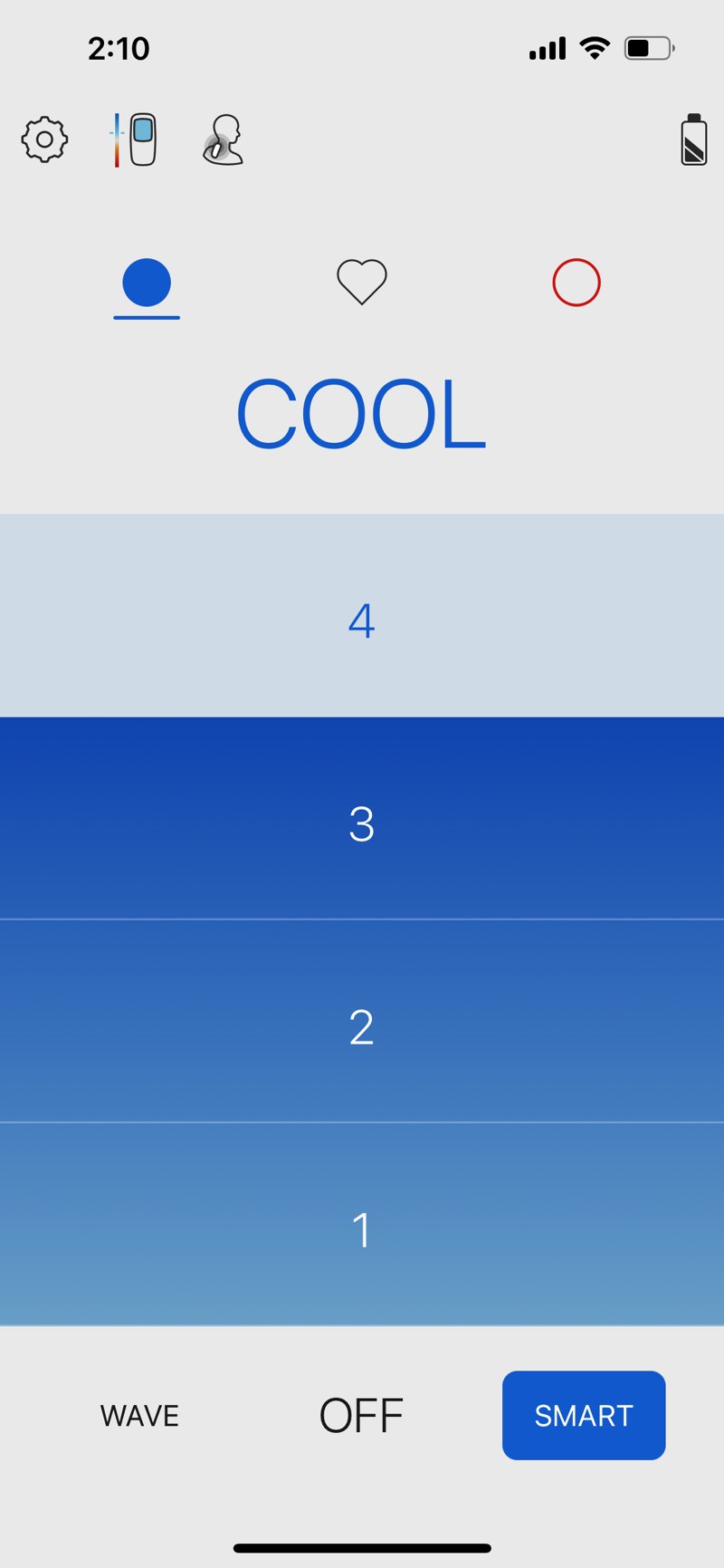 ▲ 「COOL」モードは4段階のレベル調整ができます。外部電源に繋げばさらに「レベル4+」のハイパワーモードが使えるようになります。