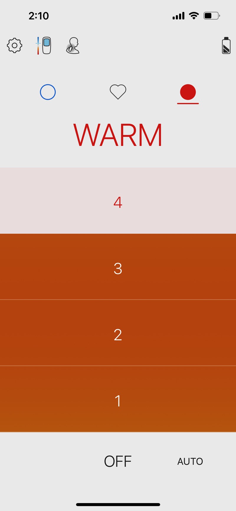 ▲ 「WARM」モードも4段階。AUTOを押すことで自動で適温に調整してくれます。