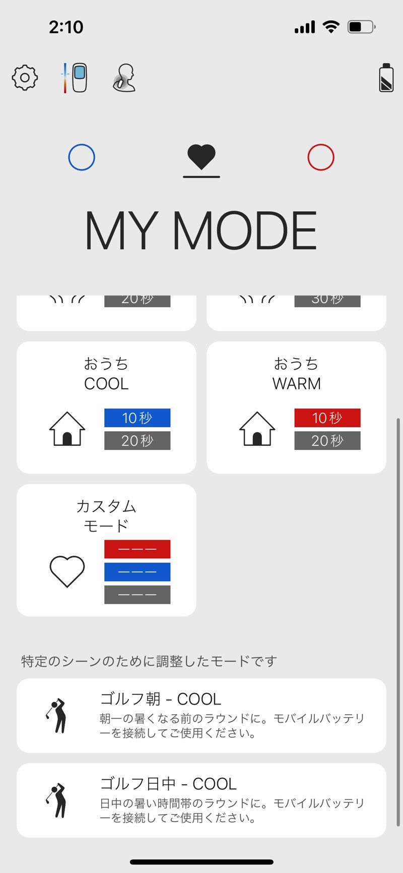 なお、このゴルフ用モードの場合はモバイルバッテリー接続が必要とのこと。先述の通りモバイルバッテリーを使えば長時間&ハイパワーモードにも対応するので、ガッツリ使いたい方は用意しておくと良いでしょう。