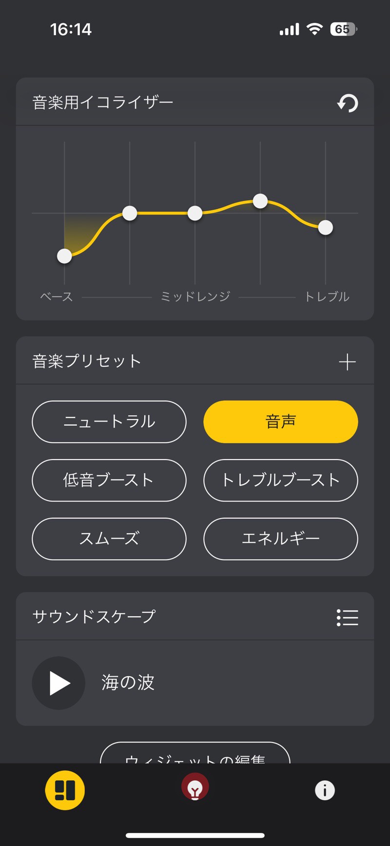 また、イコライザー設定も視覚的にわかりやすく、高音域や低音域など耳の刺激になる音域を好みで調整することができます。