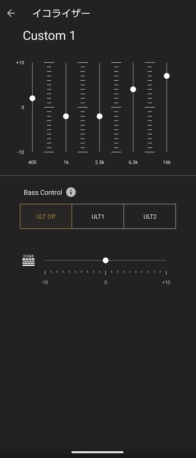 「ULT1」では低域を強調しながらボーカルはクリアな状態を保ったバランスのいい重低音を感じ、「ULT2」では空間が震えるような爆音を間近で聴いてるかのような“ド迫力”を感じます。もちろん「OFF」にしてもどんな音楽ジャンルとも相性の良いまとまりのあるサウンドを体感出来ます。