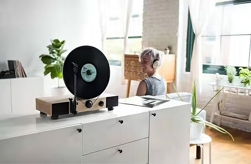 まずはこのインパクト! 「音」だけでなく「映え」も楽しめるレコードプレイヤーは、部屋に置くだけでこの存在感。自宅に来た彼女や友人も、二度見、三度見間違いなしなので、音楽観賞はもちろん、大人の部屋のアクセントにもぴったりです。
