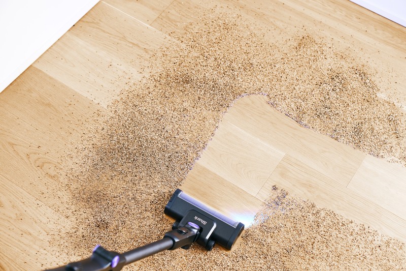 こちらシャークの『PowerClean 360』はフロアセンサーがついていて床タイプを自動で感知するので、たとえばカーペットの床ならゴミが“ズババッ”と吸われている実感が手に伝わってきます。前に押し出す時だけではなく手前に引く時もゴミを吸ってくれるので、とにかく短時間できれいになる。我が家はL字型キッチンですが、その角のゴミが溜まりやすいポイントもヘッドの左右両側にあるエッジセンサーが壁際を自動感知することでクリア。クリーナーをドックに戻すだけでゴミを自動収集してくれるし、紙パックなどを購入しなくてもよいのがうれしい、といいことずくめ。