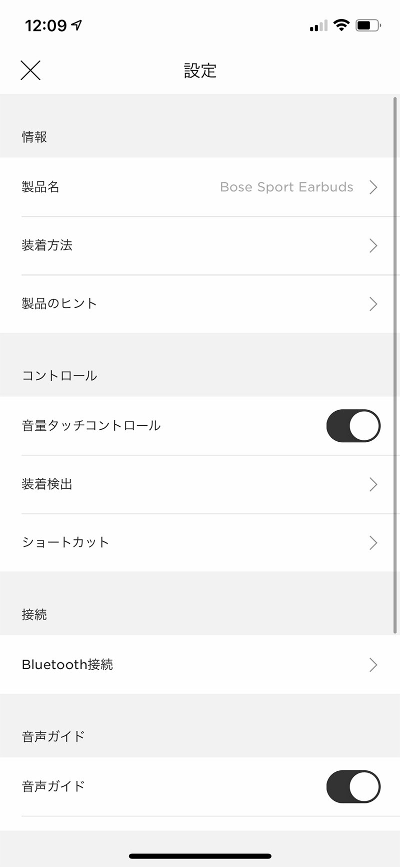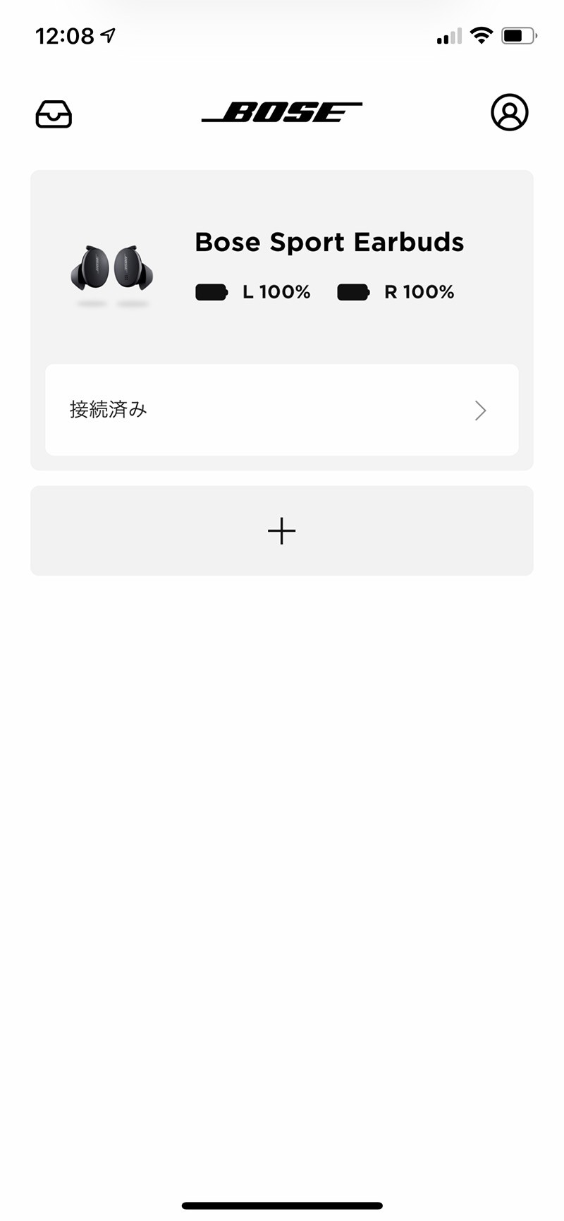 ▲ 「Bose Music」の接続画面。初期設定ではイヤホンケースの蓋を開けるだけでBluetooth設定が開始されるので接続も楽々です。