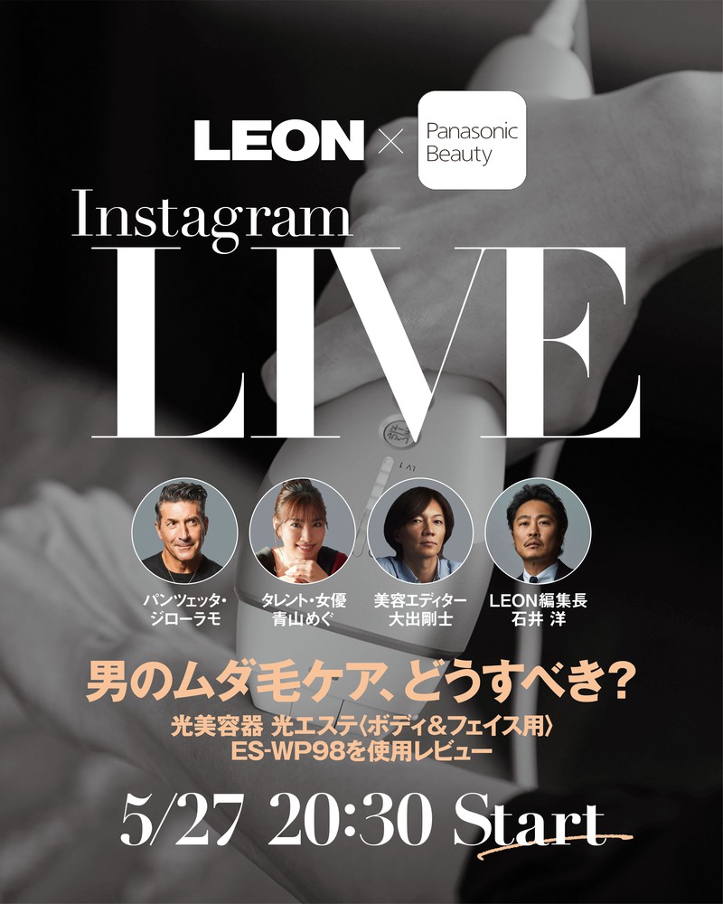 お試しするのは我らがジローラモとLEON編集長石井 洋。ゲストにはタレント・女優の青山めぐさん、美容エディター大出剛士さんを迎え、女性目線や美容のプロの目線から解説していただきます。