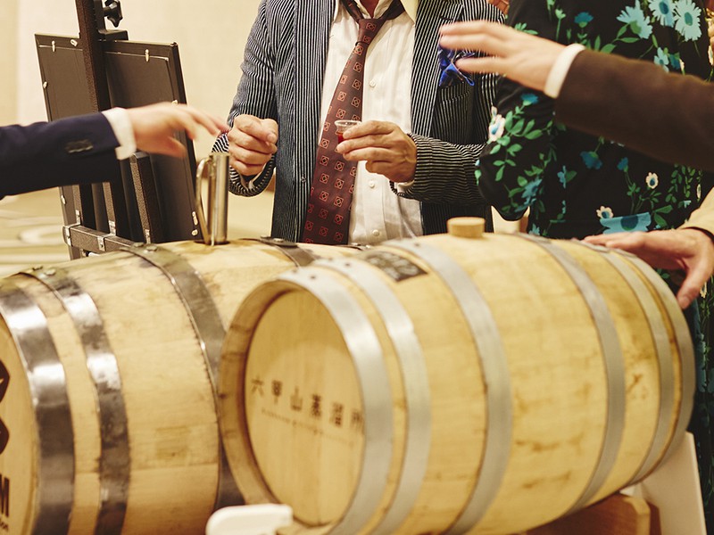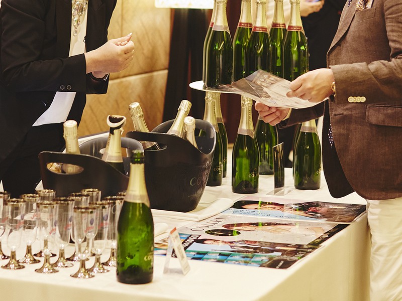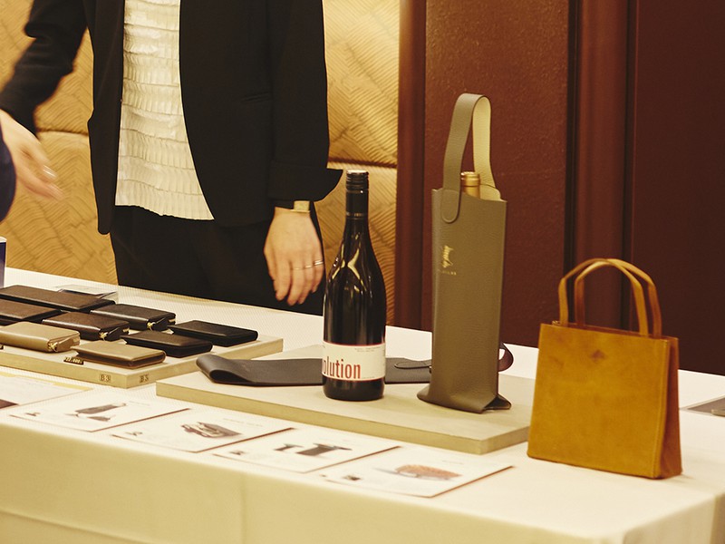会場では、ホテルのシェフが腕によりをかけた食事とお酒を楽しみつつ、ちょっと休憩てな時間には、協賛企業ブースへ。チョコレートのような香りと味わいを楽しめる「六甲山蒸溜所」のウイスキーに舌鼓を打ったり、神戸ビーフのレザーを使ったサステナブルな「KOBE LEATHER」の革製品に財布の紐を緩ませたり……。乾杯のシャンパーニュ「Collet」をもう一杯!とお代わりしたりと、休憩どころか楽しい時間を過ごしました。