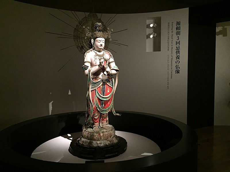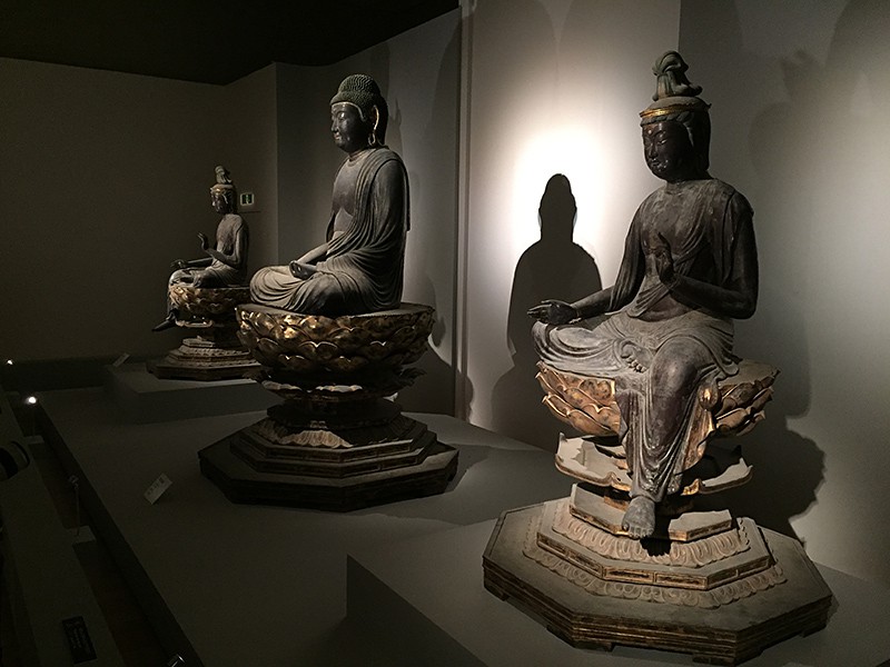 運慶誕生と同時代に作られた阿弥陀如来および両脇侍坐像(奈良・長岳寺)。今回の展覧会では運慶だけでなくその時代や本人に関係のある様々な仏像や資料が充実している