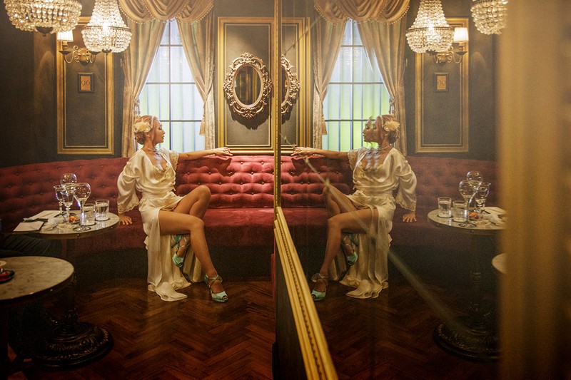 普段は会員制で、大正モダンガールのフラッパーファッションを纏った淑女たちが紳士をもてなすという、なんとも艶っぽい空間。そんなセンシュアルで、エクスクルーシブなお店の雰囲気に「ラペルラ」の世界観がぴったりとマッチし、パーティーの会場に選ばれました。