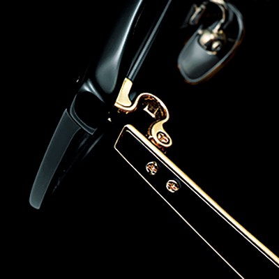 独自機構のダブルフロント構造と、逆Rパーツを搭載。フェイスフロントで負荷を解消し、インナーフロントでレンズを独立して固定することで、安定した掛け心地と見え方を生み出します。