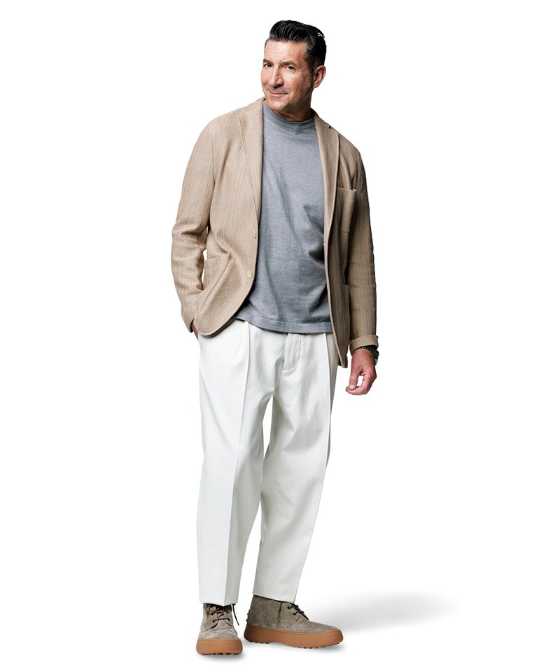 それがパンツのシルエット。ご周知のとおり、いまメインストリームは腰元ユルりなパンツですから、このアップデートによって王道の一足はまたしても、時代と我々の足元にフィットしてきたというわけです。時代とともに果敢にアップデートできる。ゆえに、「トッズ」は我々に最高に似合うのですね。