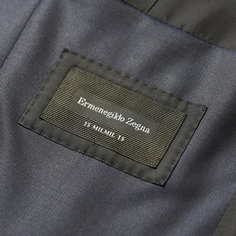 こちらのスーツは「15 milmil 15(クィンディッチ・ミルミル・クィンディッチ)」という、エルメネジルド ゼニアの生地コレクションのなかでも最高級ランクのメリノウールを使ったもの。