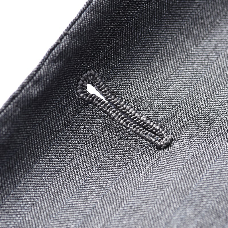 ボタンホールは手仕事で縫い上げられています。こちらは表側。糸目が揃っているので、まるで精密なミシンで縫い上げたかのようですが、糸目の分量がばらついた裏側を見れば、見える箇所にはとことんこだわるナポリ流の伊達心が伺えます。