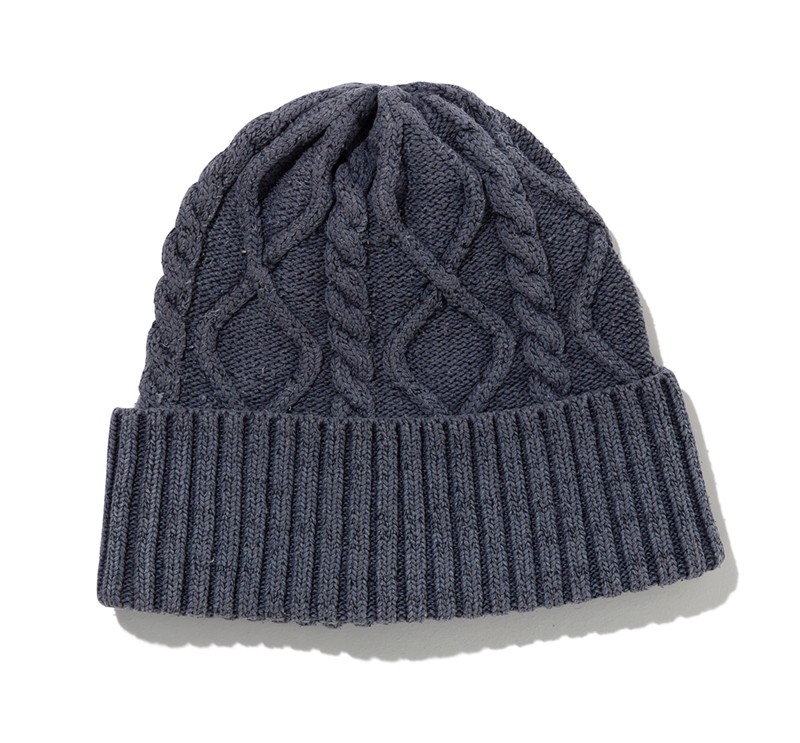 渋めのチェック柄を配したツィードのジャケットといった味のあるコーデには、ニット帽もこんなフェード感のある色みを。ケーブル編みと相まってヴィンテージな雰囲気を醸し出すその色は、例えば髭をたくわえたダンディな顔立ちを、一層渋く見せてくれます。